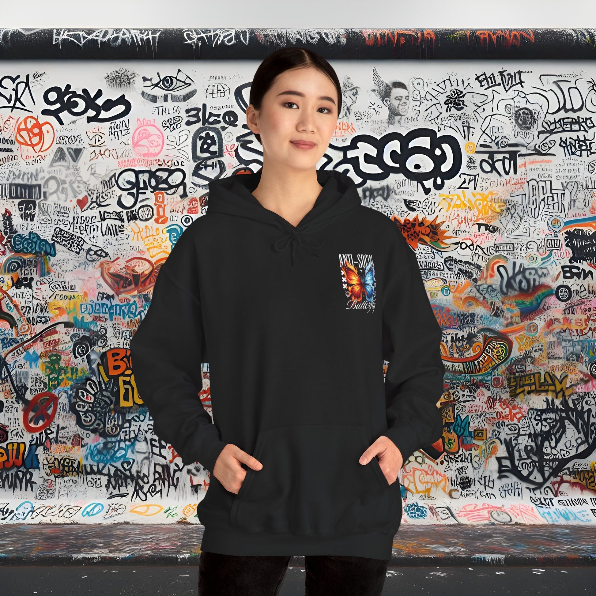 Anti-Social Butterfly Hoodie - Unisex Heavy Blend™, Graphic Sweatshirt for Streetwear Lovers, Perfect Gift for Creatives, Unique Style [...]