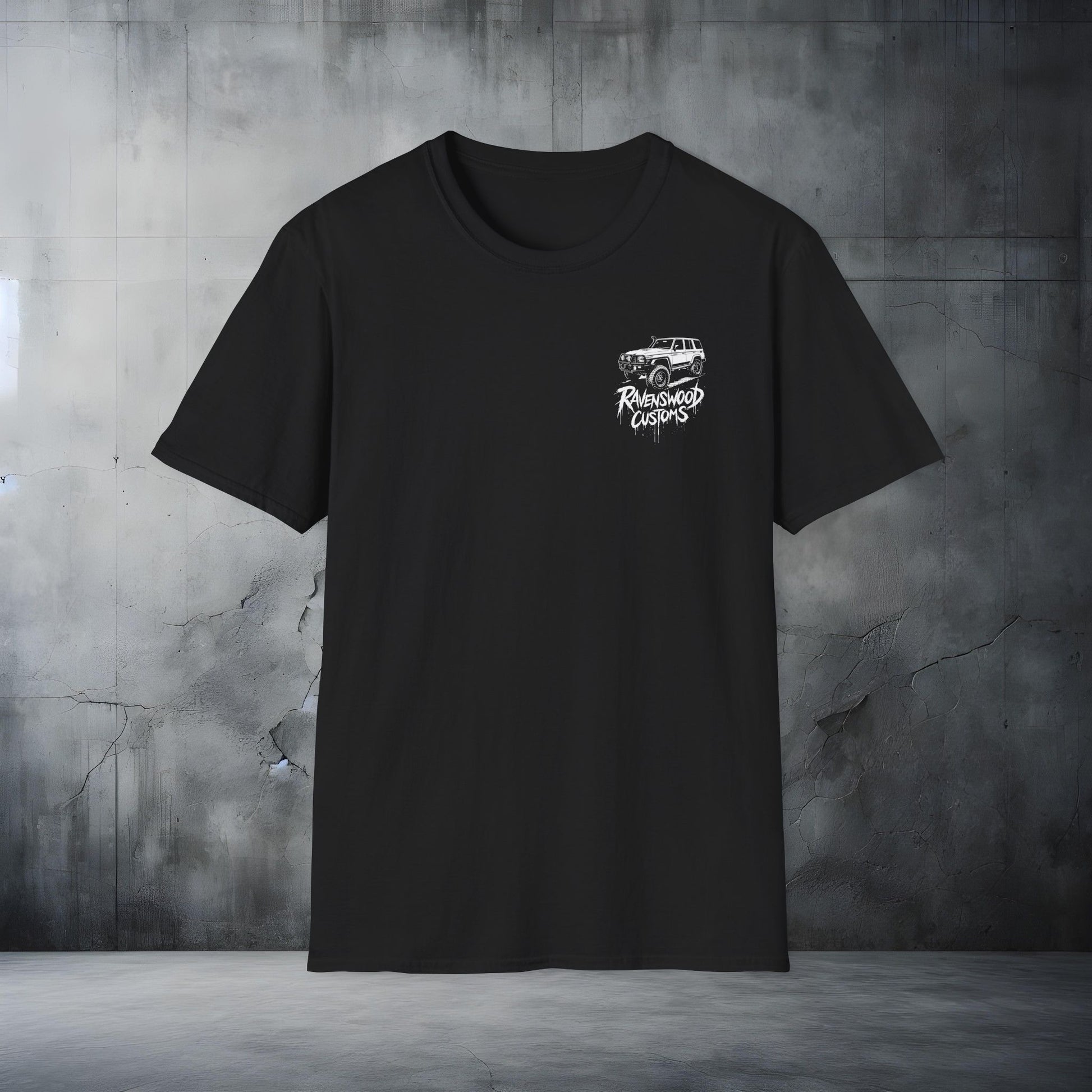 Put it on after a long day in the garage. It wears well under a flannel or alone while you show up to meet the crew at the trailhead. The chest detail reads like a badge; the bold back graphic broadcasts your shop allegiance without shouting. Wear it to night runs, build nights, or when you’re detailing your rig for the next meet—the tee moves with you and stays comfortable all day.