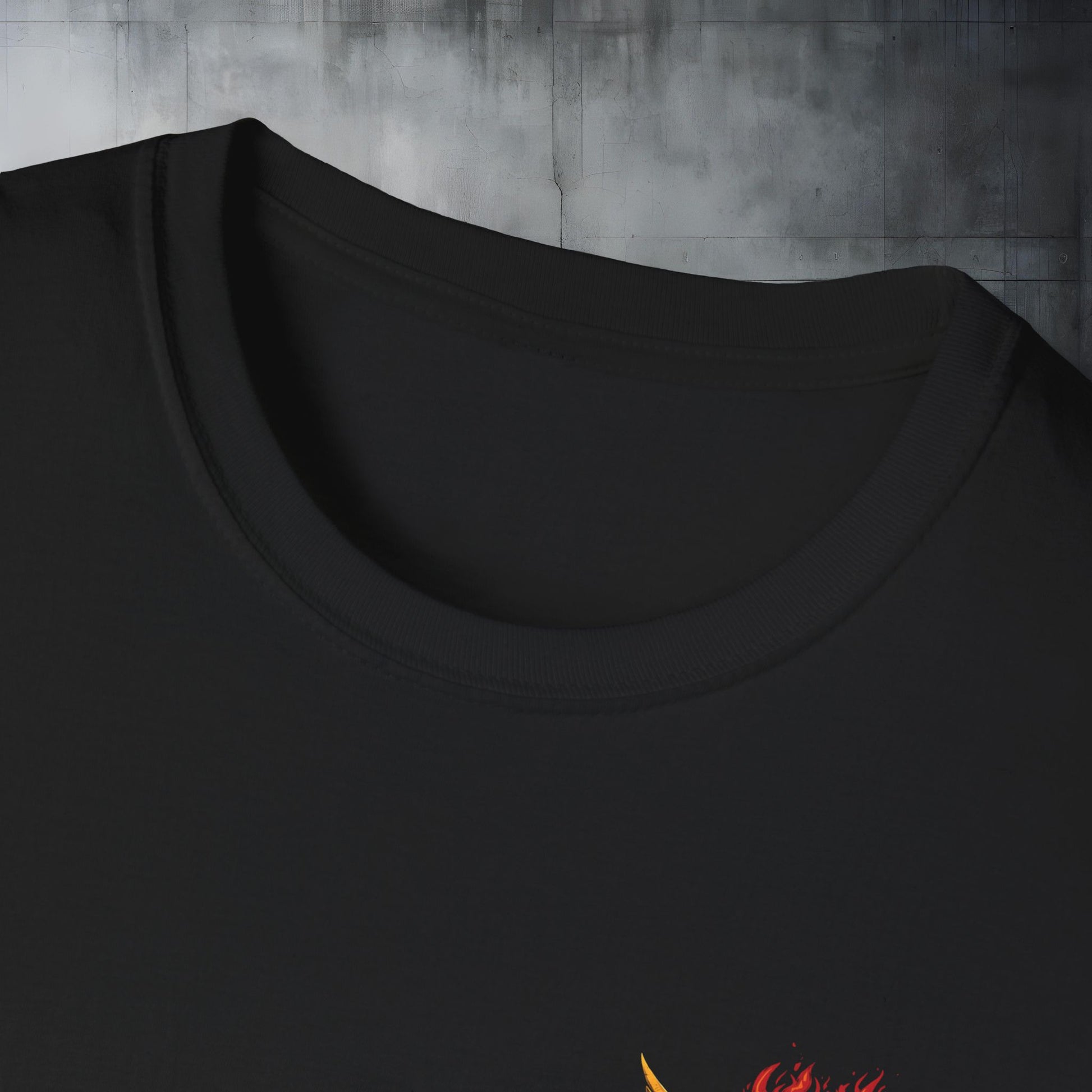 This soft, breathable tee carries a bold, handcrafted vibe — a slim crew neck and clean classic fit that sits easily under a jacket or stands alone. The front chest features a small, detailed emblem; the back bursts with a fiery, skull-and-wing illustration and hand-lettered 'Ravenswood Customs' logo. The fabric feels smooth and durable, with a lightweight drape that layers without bulk. Wear it to the garage, the show, or on a long ride — it holds up to frequent wear and washes while keeping the print crisp and vibrant.