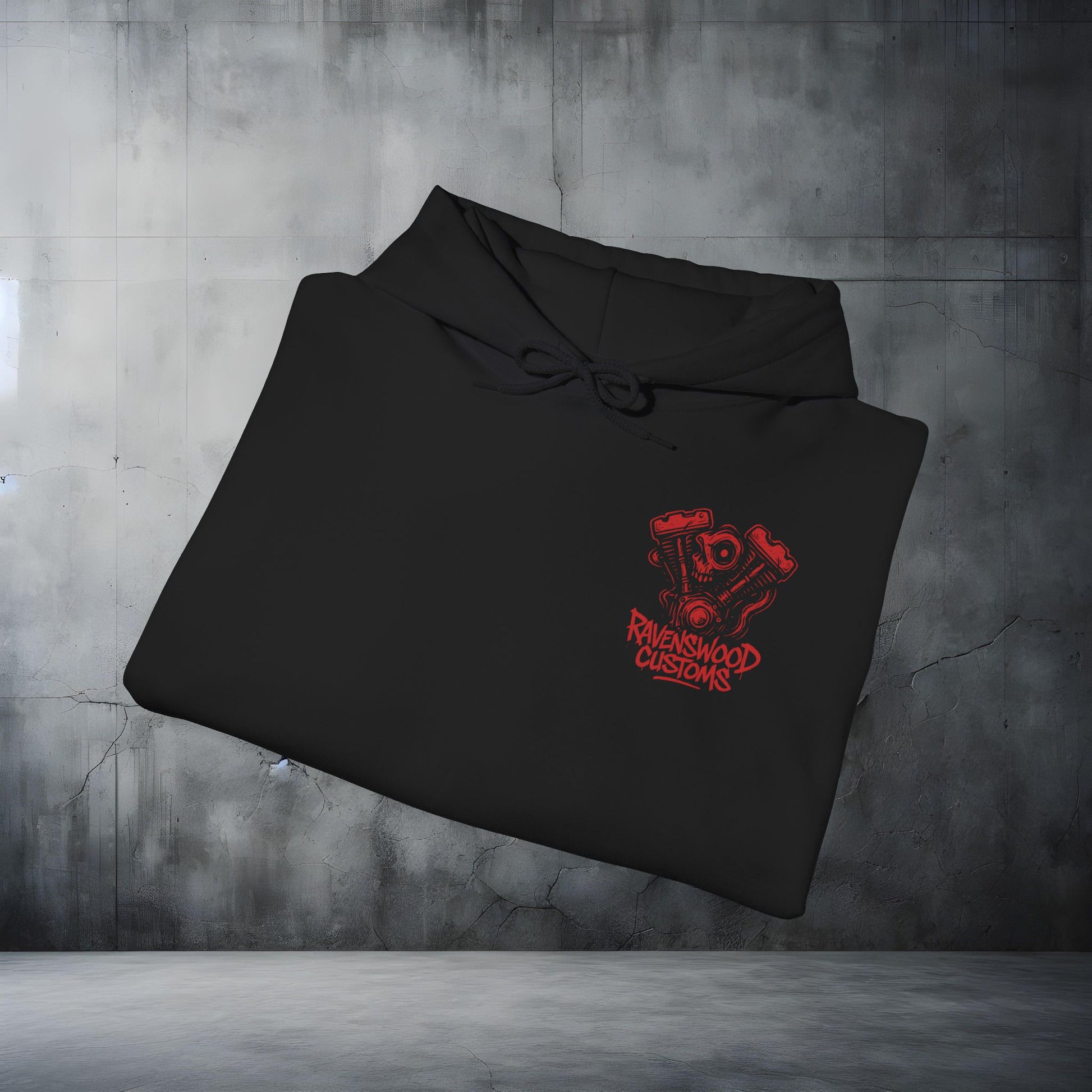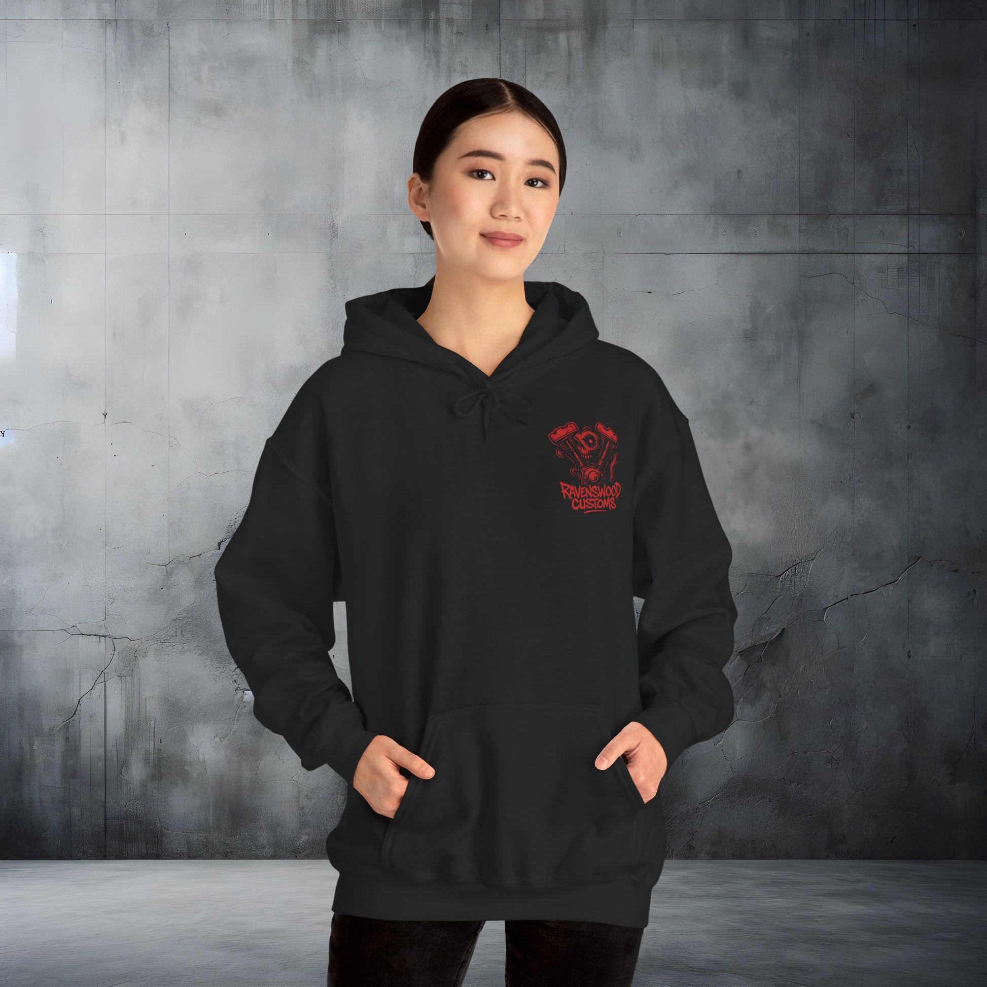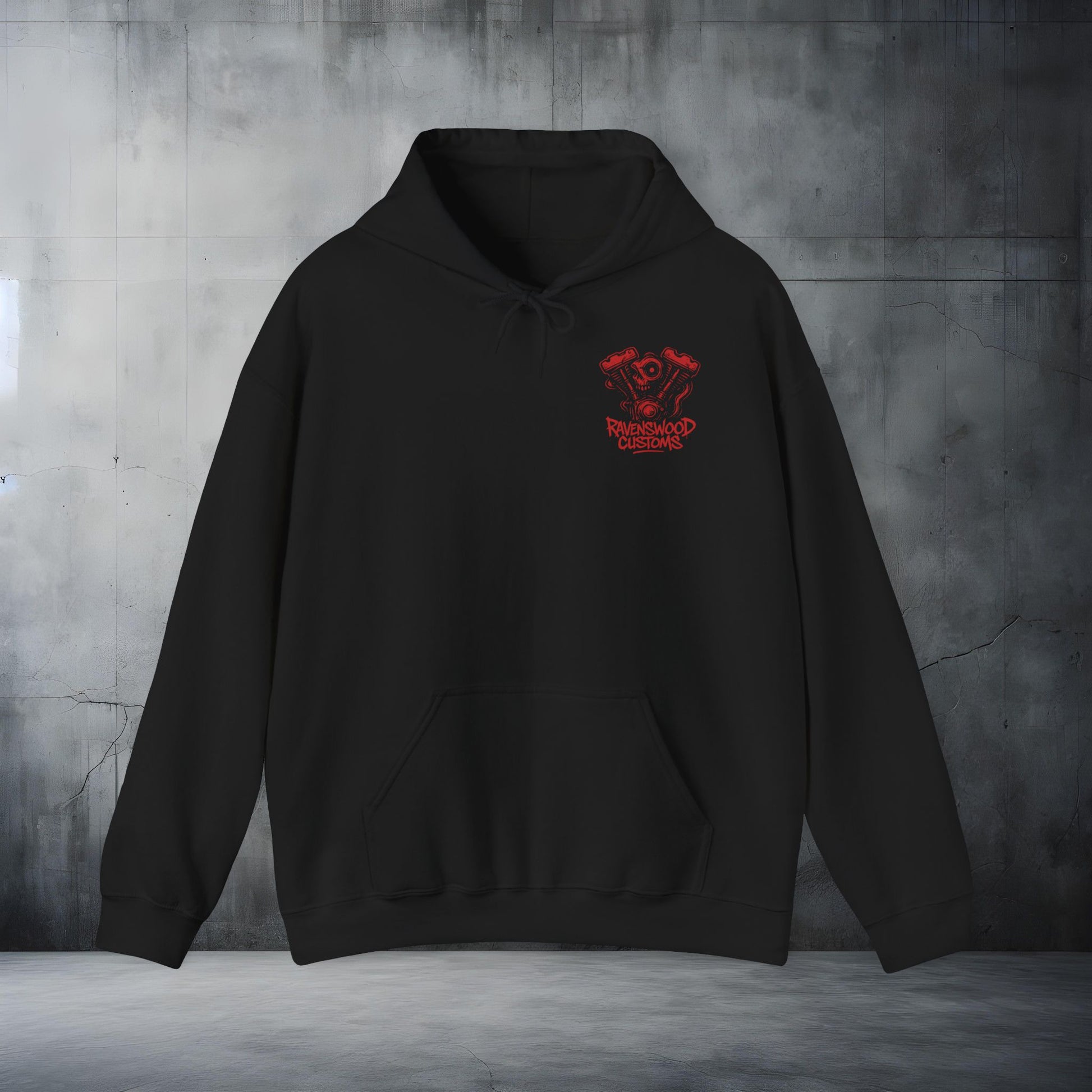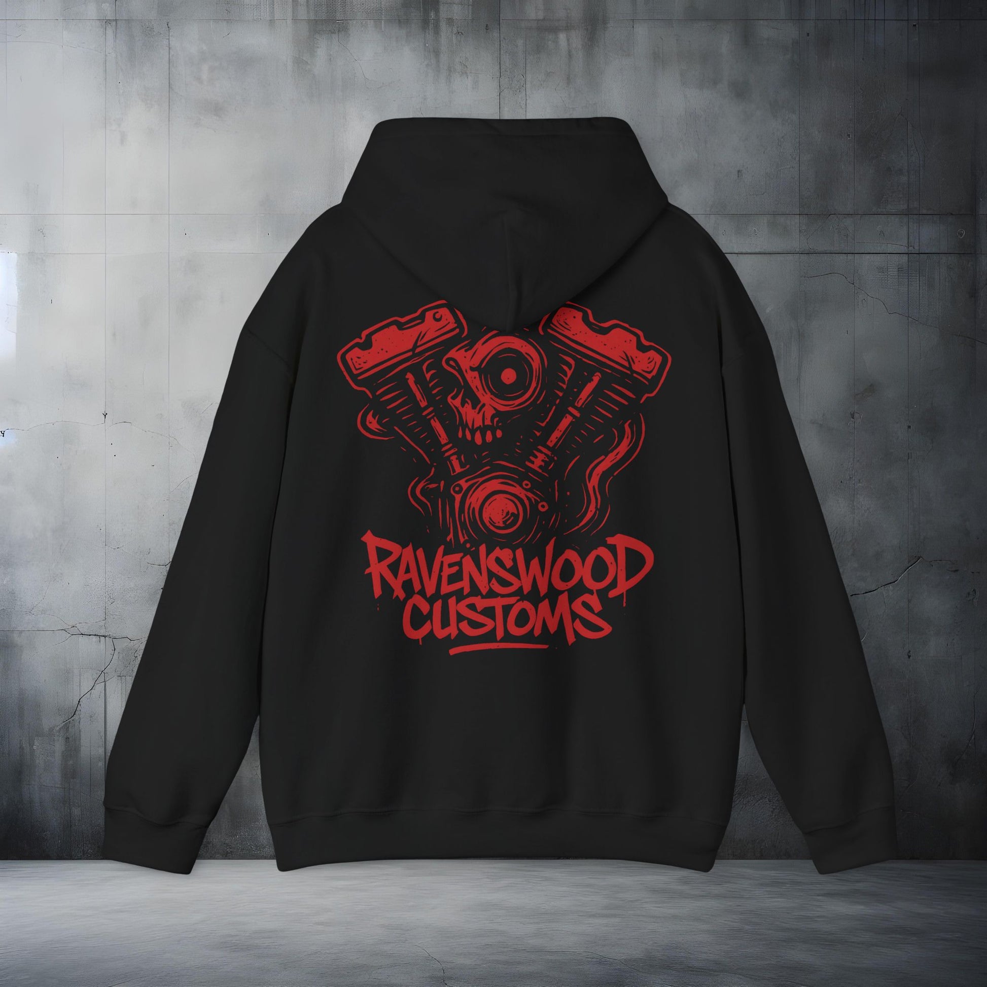 Ravenswood Customs Red Vtwin Heavy Blend Hoodie | Skull Design, Unisex Sweatshirt