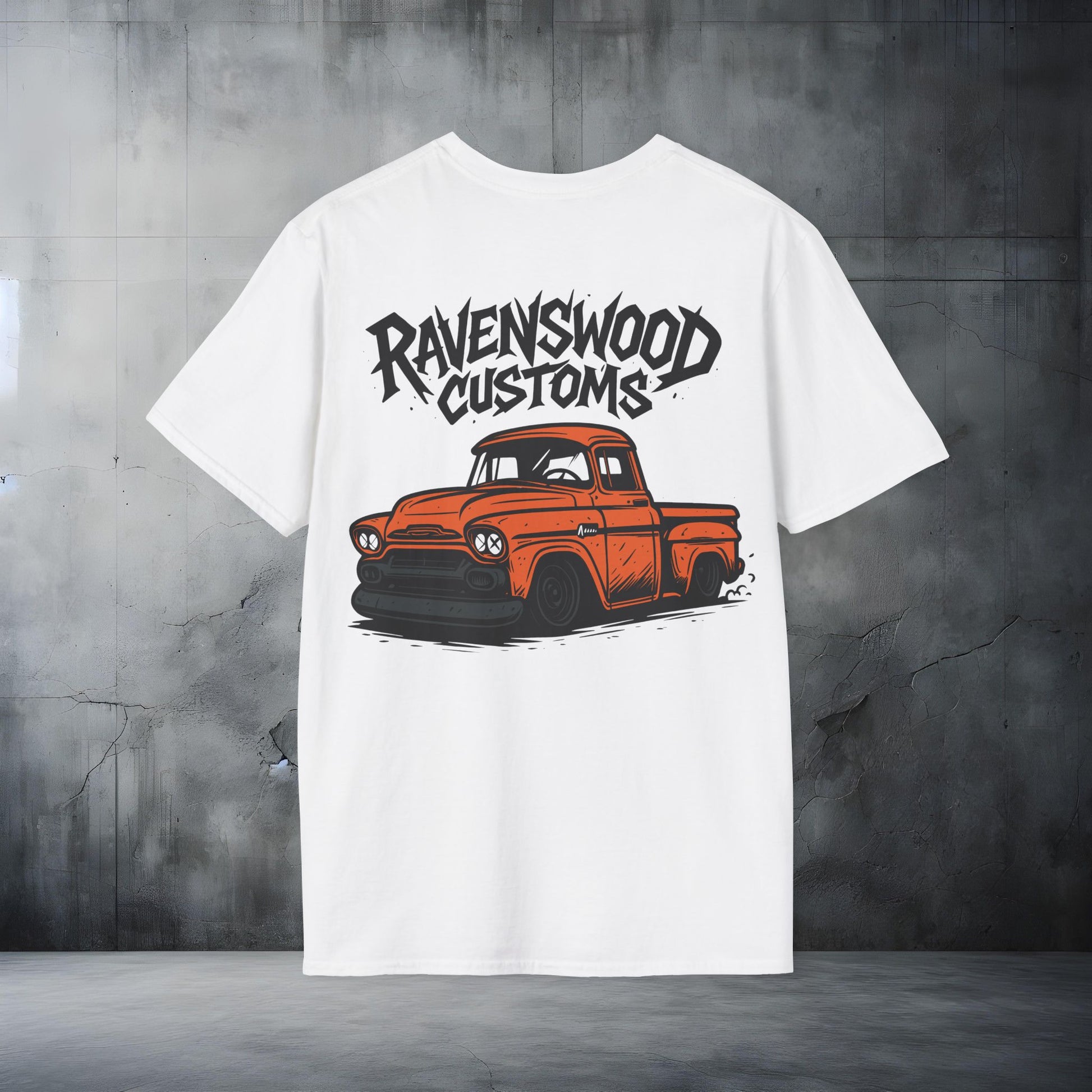 Ravenswood Customs Unisex Softstyle T-Shirt - Orange Vintage Truck Design, Cool Graphic Tee