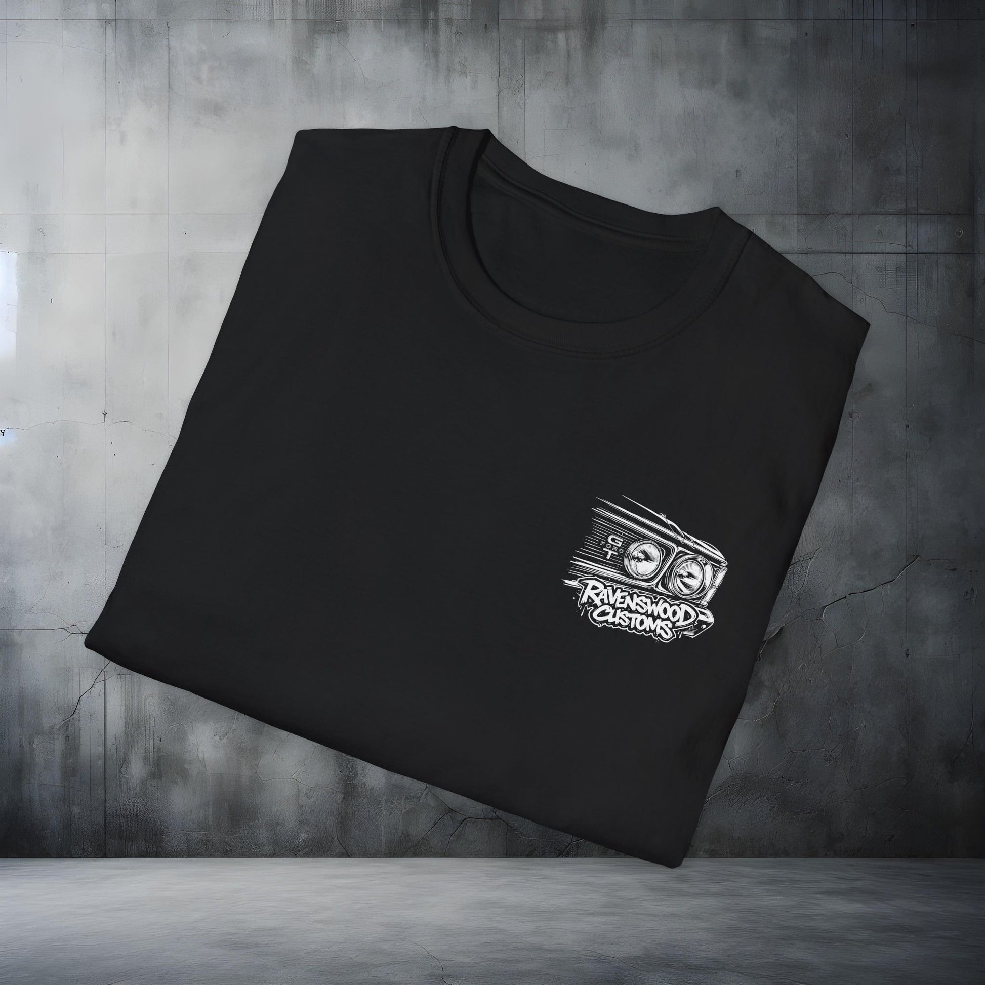 This tee carries the quiet confidence of a garage at dusk. A compact chest emblem and a bold back illustration — hand-sketched headlights, motion lines, and a raw script logo — speak to craft, speed, and hands-on pride. It settles like a familiar tool on the shoulders: comfortable, breathable, and made to be worn while wrenching, cruising, or swapping stories under neon lights. The classic crew cut keeps the look clean so the artwork commands attention. Wear it to meets, late-night drives, or when you want to represent a workshop’s grit without shouting for it.