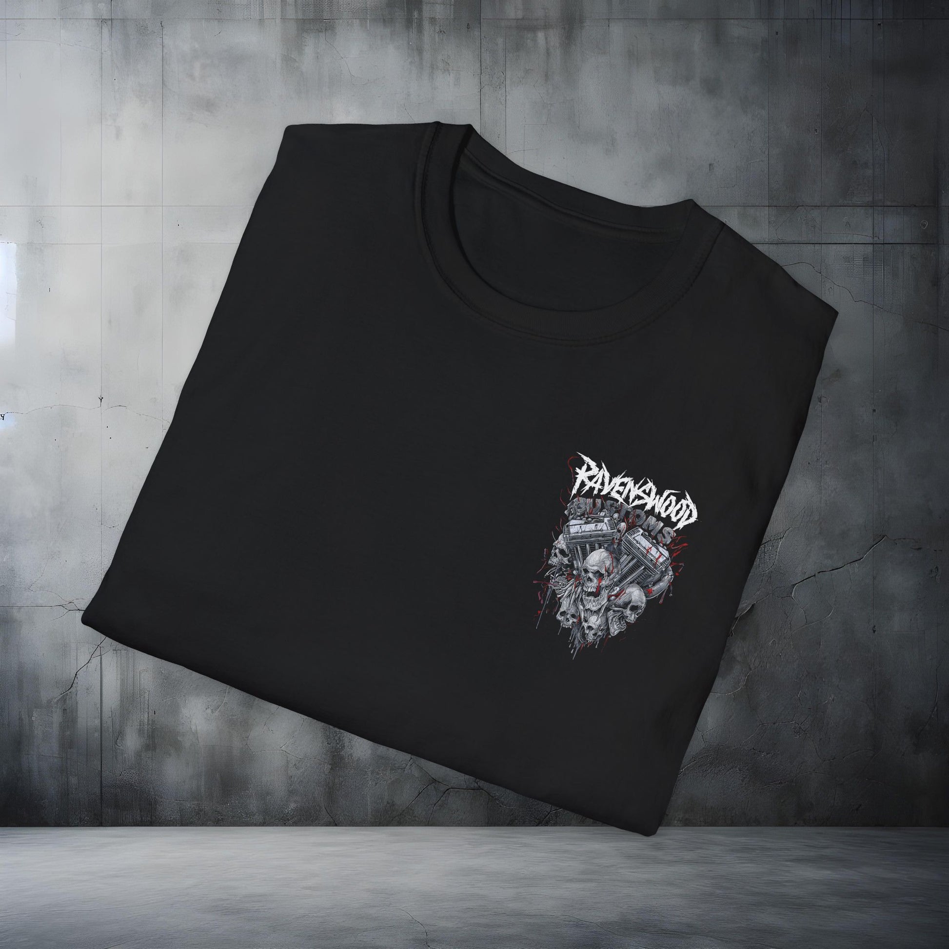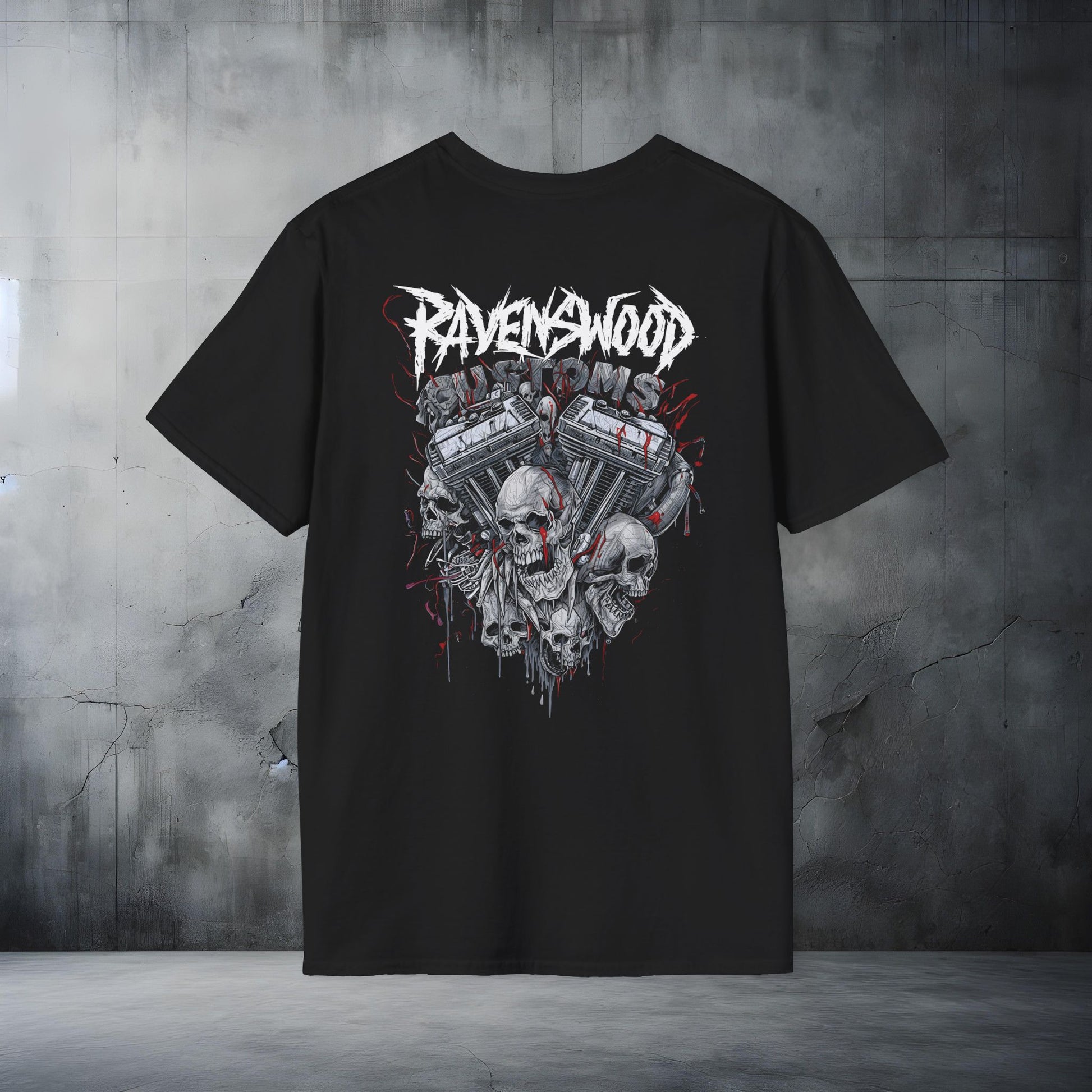 Ravenwood Customs Skull Vtwin Engine Tee - Gothic Motorcycle Biker T-Shirt